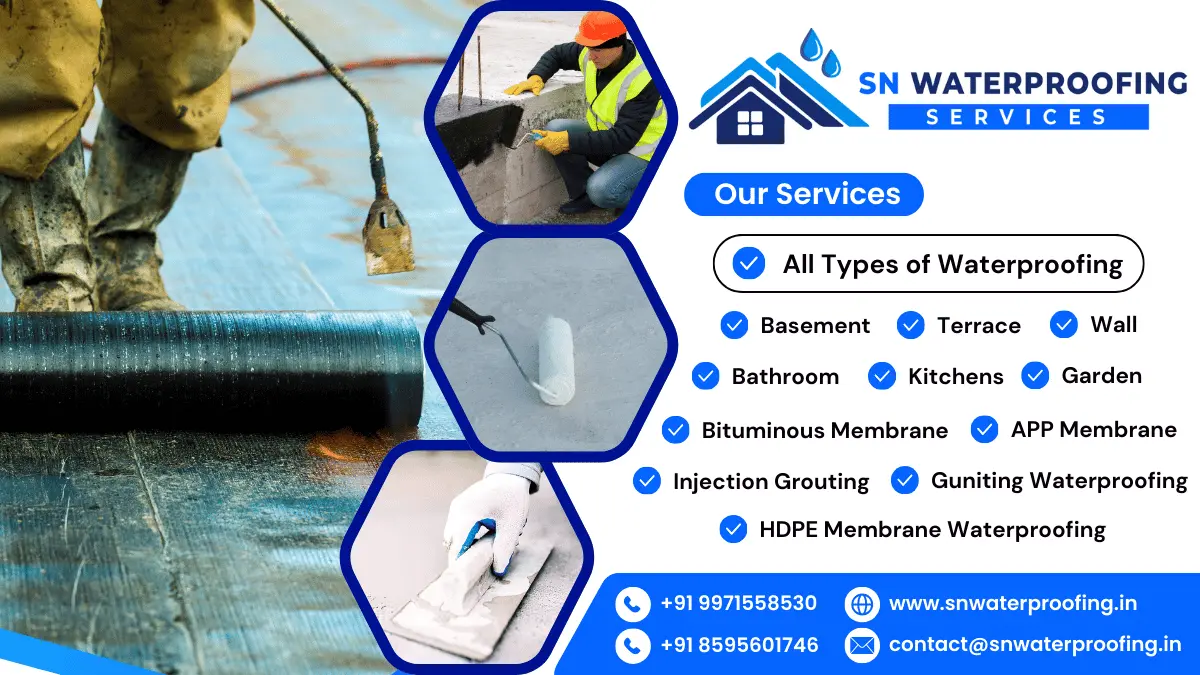 At SN Waterproofing, we offer a variety of services including basement, terrace, bathroom, wall, kitchen, and garden waterproofing. We also specialize in bituminous membrane, injection grouting, and liquid membrane waterproofing methods.
